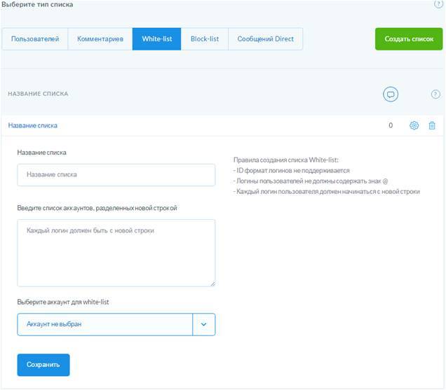 - выбирать среди ваших аккаунтов тот, для которого, собственно, этот список и составляется;