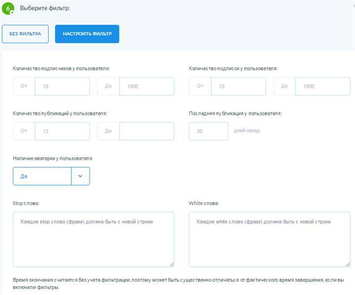 После вы указываете количество подписчиков, на которых распространяется выбранное вами действие.