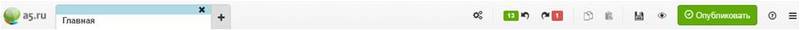 Панель управления довольно проста внешне и интуитивно понятна. В верхней части панели администратора расположены в виде вкладок страницы, с которыми ведется работа, кнопки для отмены/повтора действий, сохранения изменений, предпросмотра и публикации.