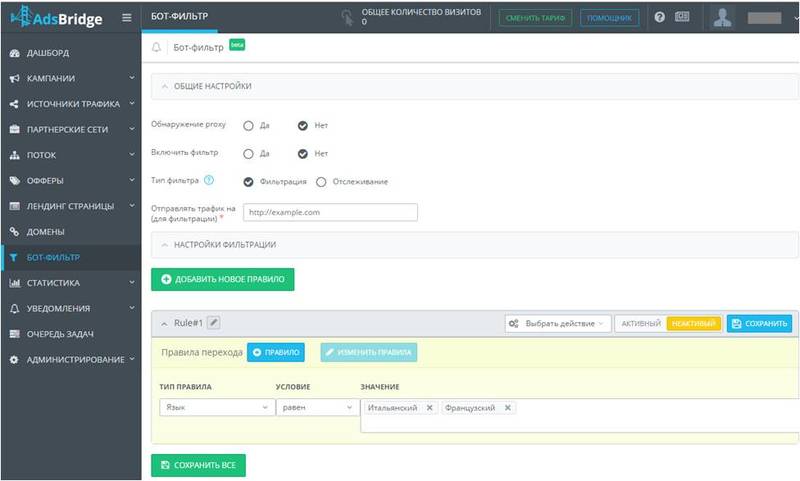 Данный фильтр позволяет отсеить боты на третьи страницы. Трафик отсеивается по более чем 13 параметрам, в том числе по IP, диапазону IP, ISP, юзеру-агуенту и т.д.