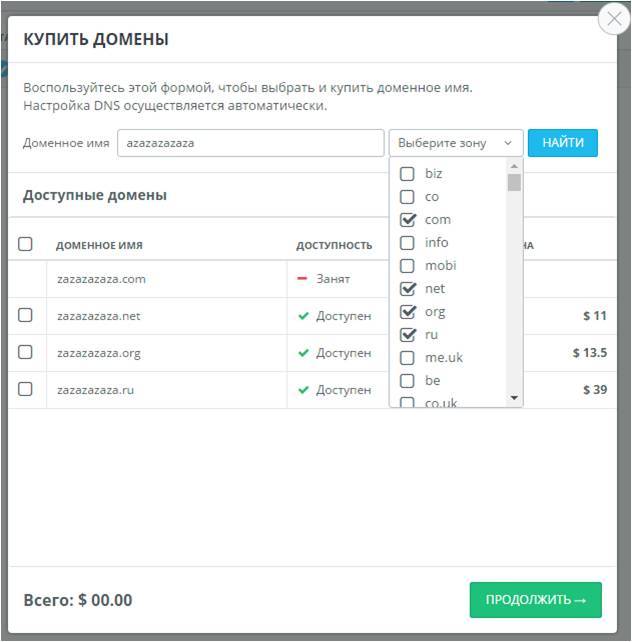 Купить домен можно и через сервис. Выбор доменных зон огромен.