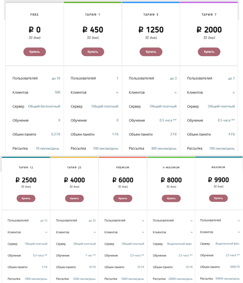 Подробнее с тарифами можно ознакомиться на сайте сервиса. Их действительно много и отличаются они по множеству параметров.