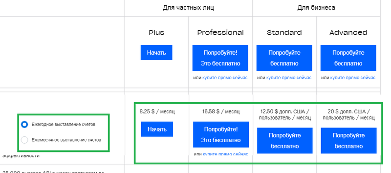 - Пакет «Advanced» - стоимость подписки составляет 25 долларов, пользователь получает доступ к неограниченному объему выделенного пространства для хранения данных, тариф включает в себя полный набор функционала.