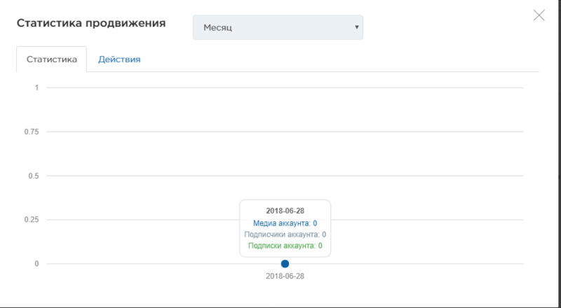 Чтобы запустить продвижение вашей страницы нужно нажать на иконку “Запустить продвижение”. Тут же вам будет доступна статистика выполненной работы за время и сутки с начала запуска процесса раскрутки.