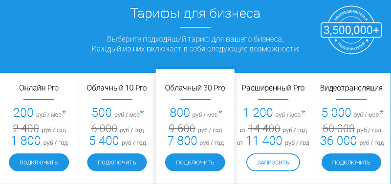 - «Облачный 30 Pro» – 800 руб./мес., 7800р/г;