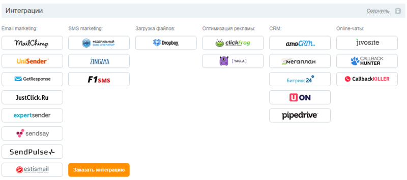 Имеется своя CRM, SMS-оповещения, настройка источников трафика для удобного анализа потока посетителей.