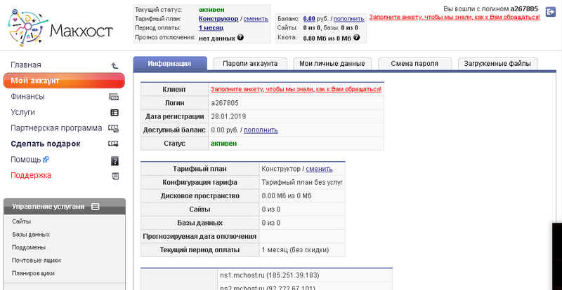 - Панель управления услугами (сайты, базы данных, почтовые ящики, домены и многое другое);
