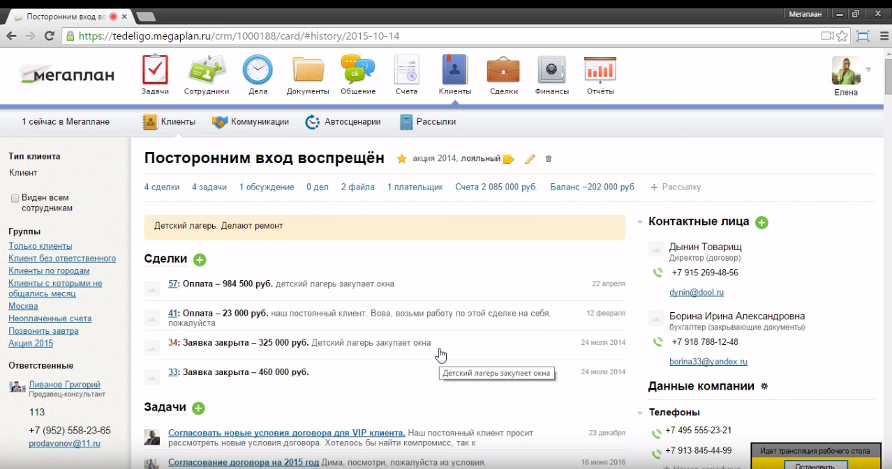 Для отлаженной и эффективной работы компания, особенно с большим количеством сотрудников, нуждаются в CRM-системе. Она полезна тем, что помогает оптимизировать работу компании в целом. Понимать на какой стадии решения находится определенная задача, кто ответственный за выполнение этой задачи, к тому же позволяет вести работу с клиентами со стадии получения контакта, заканчивая заключением сделки. Одной из систем, решающей подобного рода задачи, является платформа Мегаплан.
