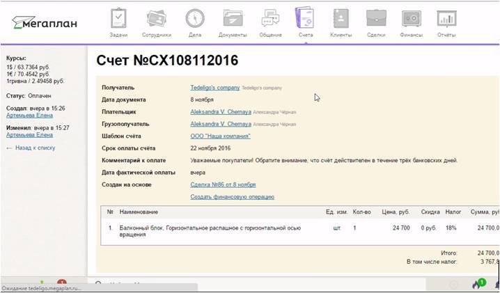 Счета составляются на основании сделок. Также счет имеет свой статус.