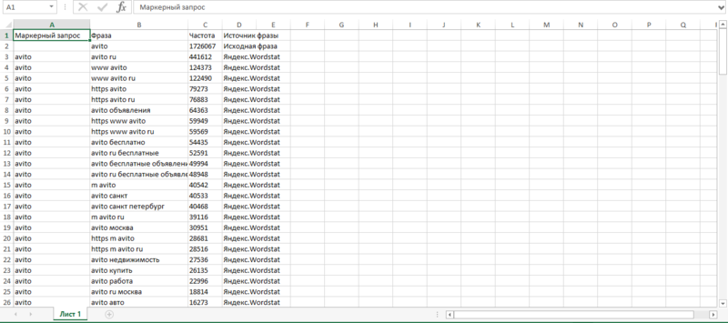 Длительность процесса может занимать длительное время, чем больше будет обьем полученных фраз, тем дольше будет их поиск. Для каждого вашего запроса будет создано отдельное задание, поэтому результаты могут занять несколько страниц сайта и для простоты навигации рекомендуется разделять их на группы.