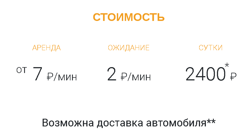 Поминутная тарификация составляет 8 рублей в минуту при передвижении транспорта, и 2 рубля в минуту в парковке. Шестичасовая аренда автомобиля обойдется в 1620 рублей, в нее включается пробег 100 километров, после чего включается тарификация 7 рублей в минуту. Прокат автомобиля на стуки стоит 2400 рублей, включает в себя 100 километров пробега, с последующей тарификацией 7 рублей в минуту. Имеется дополнительная суточная аренда «Сутки +», стоимость составляет 3200 рублей, включает в себя пробег 250 километров, с дальнейшей тарификацией 5,5 рублей в минуту.