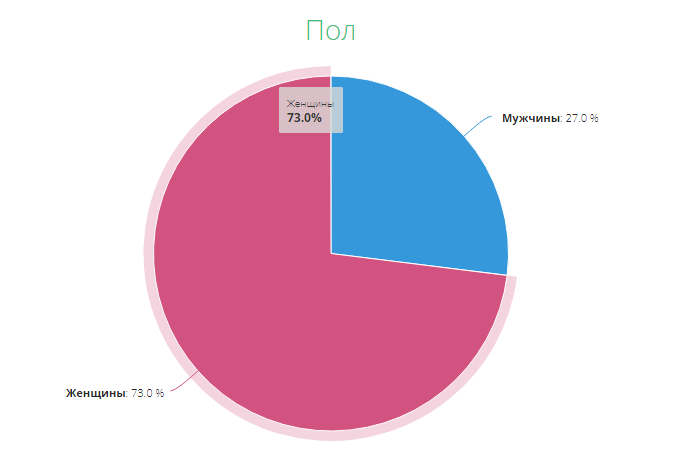 В разделе пол вы увидите соотношение мужской и женской части вашей аудитории. Она поможет узнать насколько правильно подобрана аудитория профиля, если ваша сфера деятельности подразумевает преобладание того или иного пола.