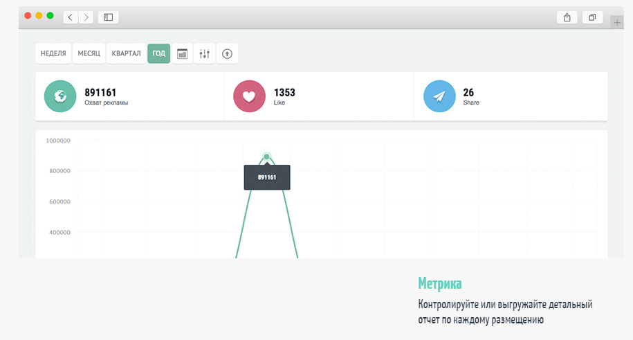 Вы можете контролировать и выгружать самые подробные отчеты по каждому из размещений вашей рекламы