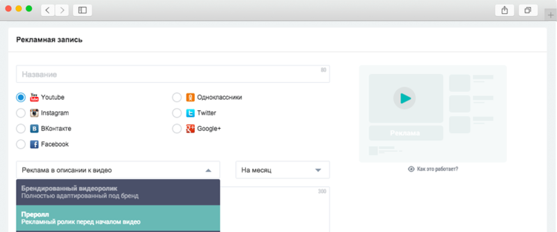 Укажите соцсеть, в которой вы хотите дать рекламу