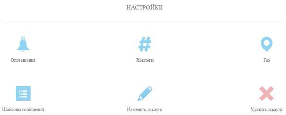 - «Лента». Здесь вы можете просматривать все записи, где будут присутствовать интересующие вас хэштеги (настроить это можно во вкладке «Хэштеги») и гео-точки (можно настроить во вкладке «Гео»). Также в этой вкладке можно настроить оповещений, хэштеги, гео-тэги, шаблон сообщений, изменить или удалить аккаунт.