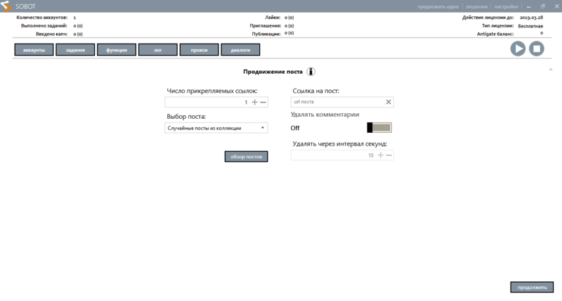 Одна из важнейших функций программы Sobot, направленная на работу с социальными сетями. Задача будет включаться и открываться автоматически при выборе других задач.