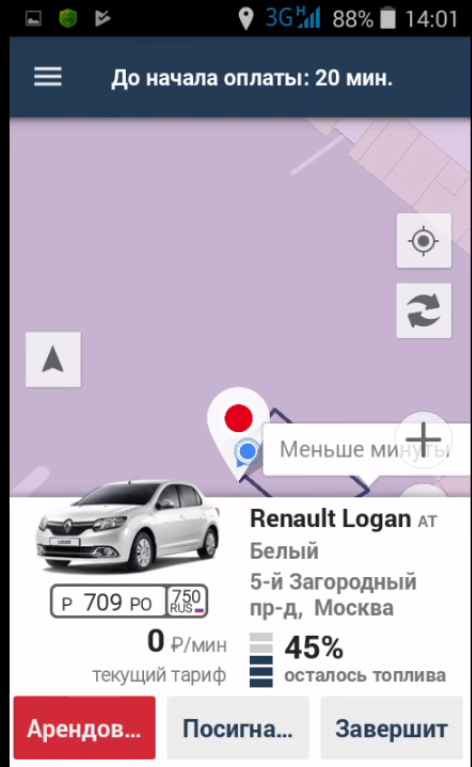 Как только вы найдите машину, которую хотите взять в аренду, вам нужно будет ее забронировать. И в течение 20 минут вы должны будете её найти, начиная с 21-ой минуты будет взиматься плата за ожидание.