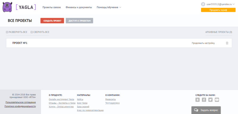После этого, сразу же откроется личный кабинет, где будут отображаться все ваши проекты.
