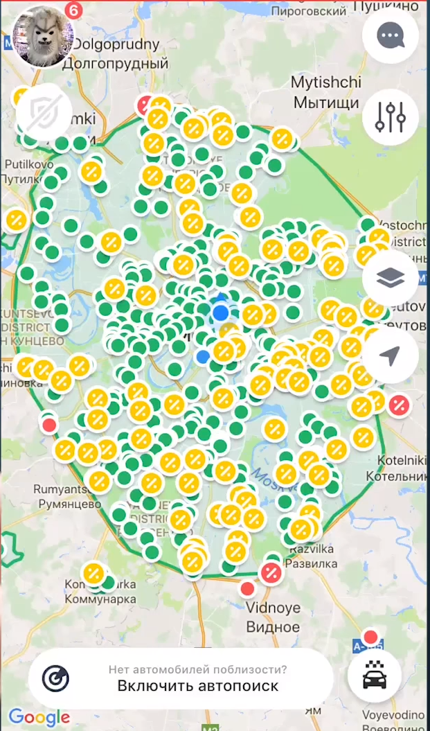 Как вы пройдете авторизацию в сервисе, на карте приложения можно посмотреть все свободные машины в вашем городе.