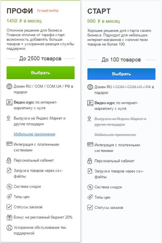 - «Старт» – 990 ₽/мес.