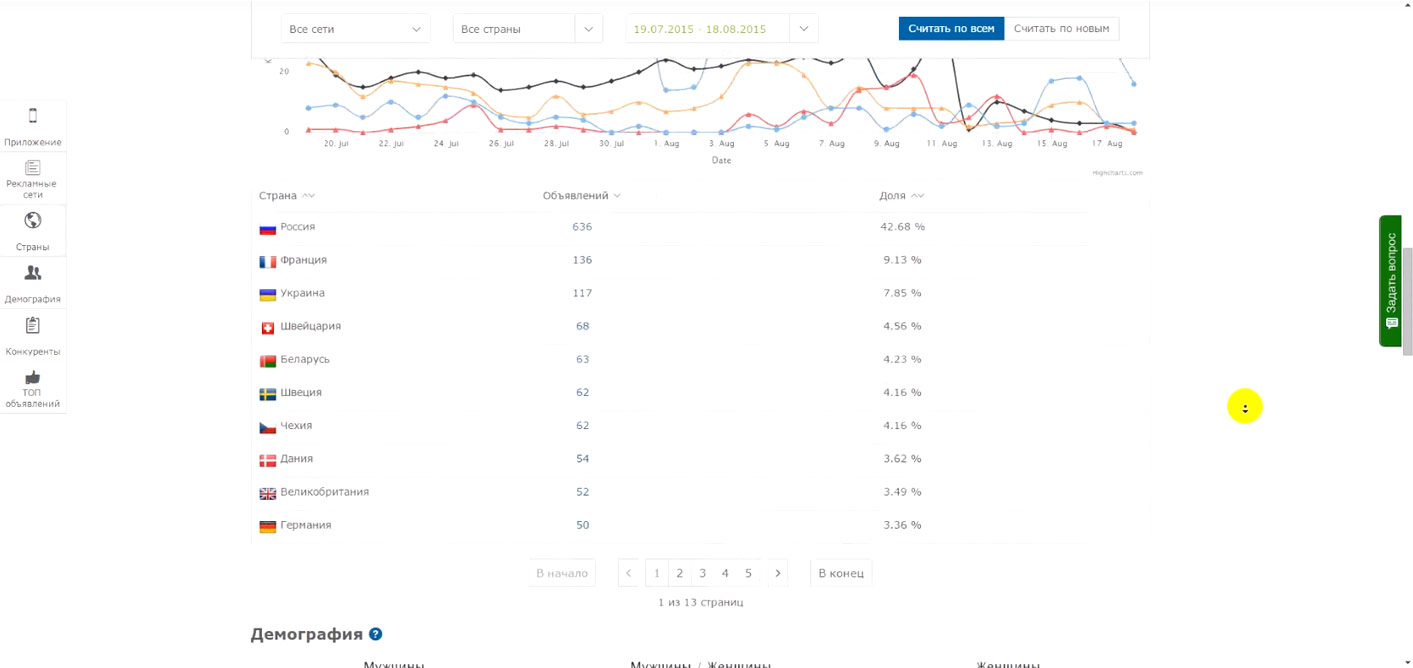Вы можете анализировать стратегии для различных стран и рекламных сетей. Анализ популярных