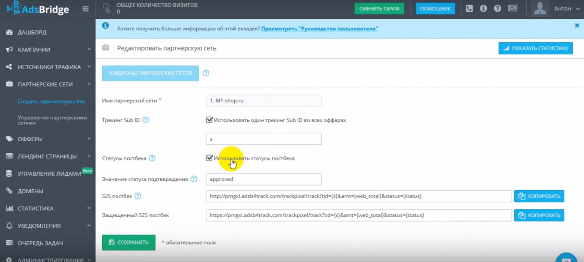 Adsbridge - обзор и настройка трекера на примере CPA сети M1-Shop