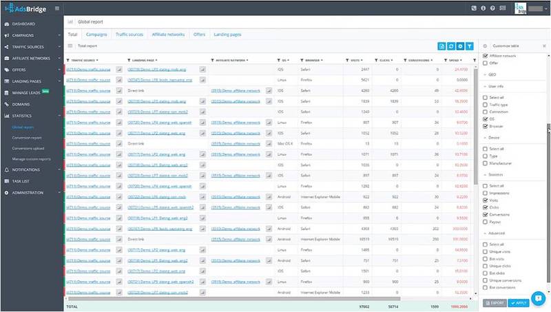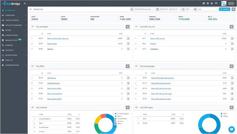 AdsBridge – это тректер для арбитража трафика, который позволяет легко оптимизировать рекламные компании, точно распределять трафик по множеству параметров и проводить ряд тестов.