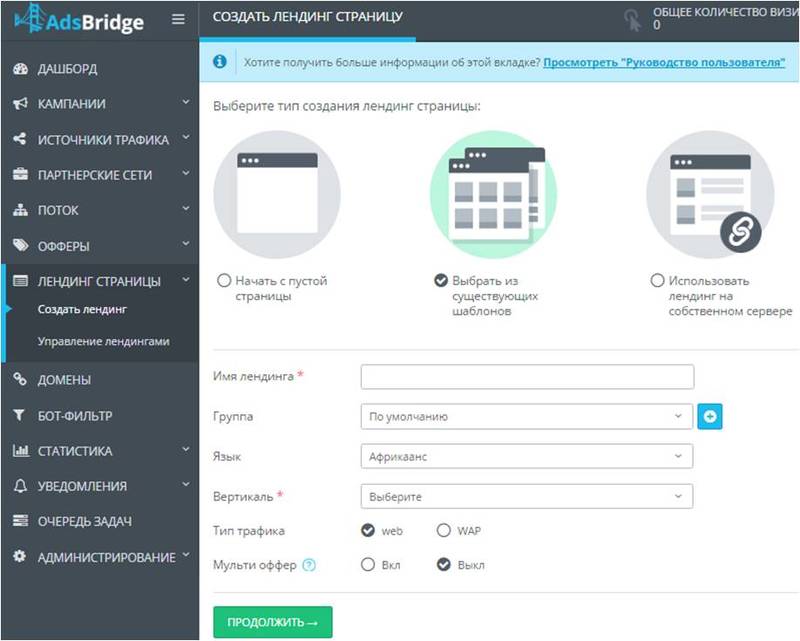 Перенаправление в системе AdsBridge происходит следующим образом: если входящий URL подходит под одно из правил, посетитель перенаправляется на лендинг, подключенный к этому правилу, а уже в лендинг встроена ссылка на оффер.