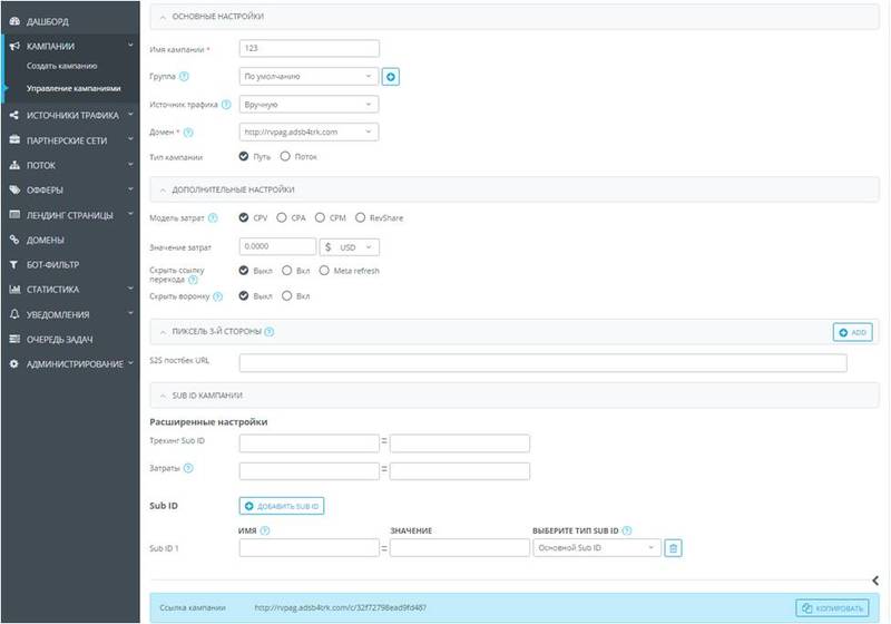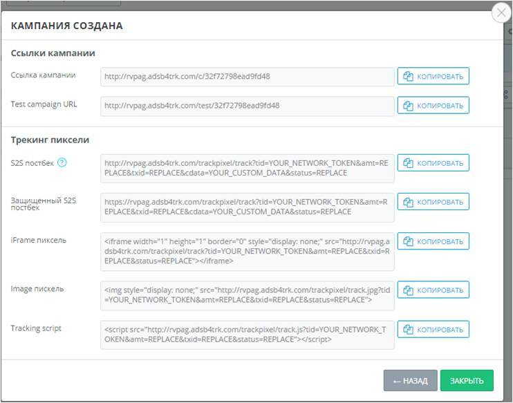 Конечным результатом создания компании является ссылка, на которую направляется трафик из внешних источников.