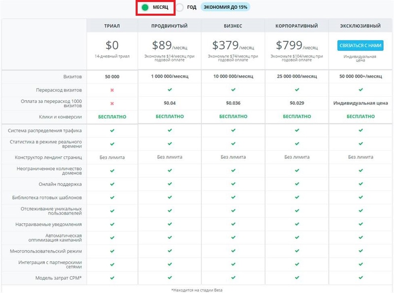 Сервис доступен в 5 тарифных планах. Один из них бесплатный – это «Триал», и он имеет ограничение как по времени пользования, так и по функциональным возможностям. Остальные тарифные планы: