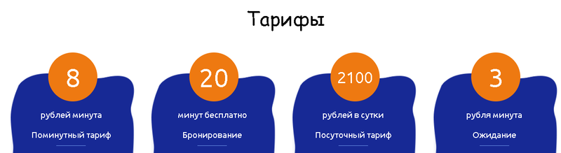 - Бронирование – с момента подключения тарифного пакета, клиент имеет 20 минут чтобы добраться до машины, по истечении данного времени, с клиента начнет взиматься плата за простой.