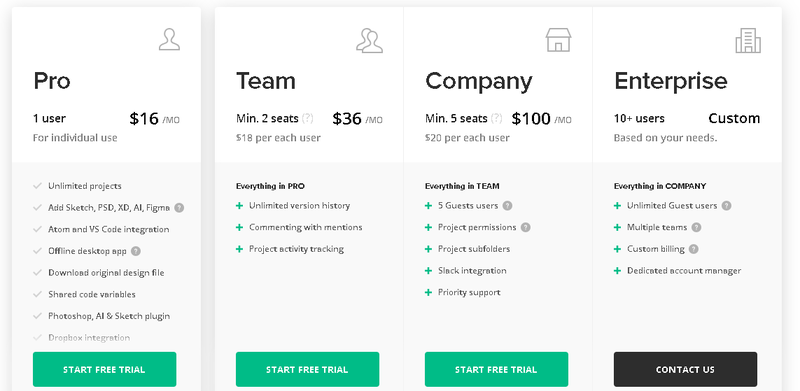 - «Профессионал» - стоимость подписки 16 долларов в месяц, рассчитана на индивидуальное пользование. Число проектов не имеет ограничений, интеграция кодов, работа в офлайн через настольное приложение.