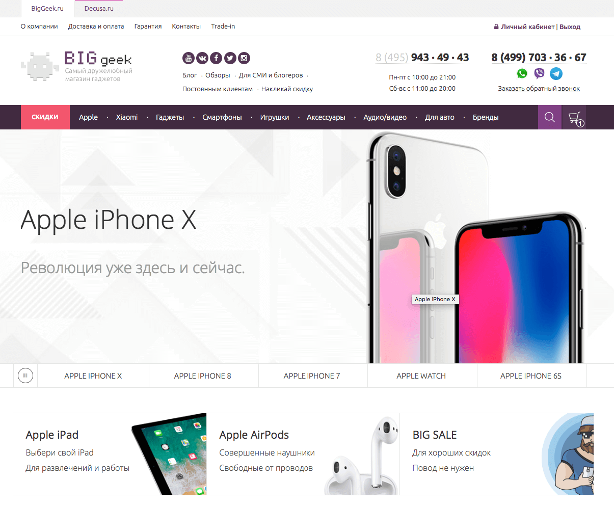 Интернет магазин BigGeek уже долгое является одним из лидеров на рынке продаж мобильных устройств и гаджетов. Также накопленный опыт работы с клиентами позволил им найти общий язык с покупателями и понять, чего они хотят от магазина.