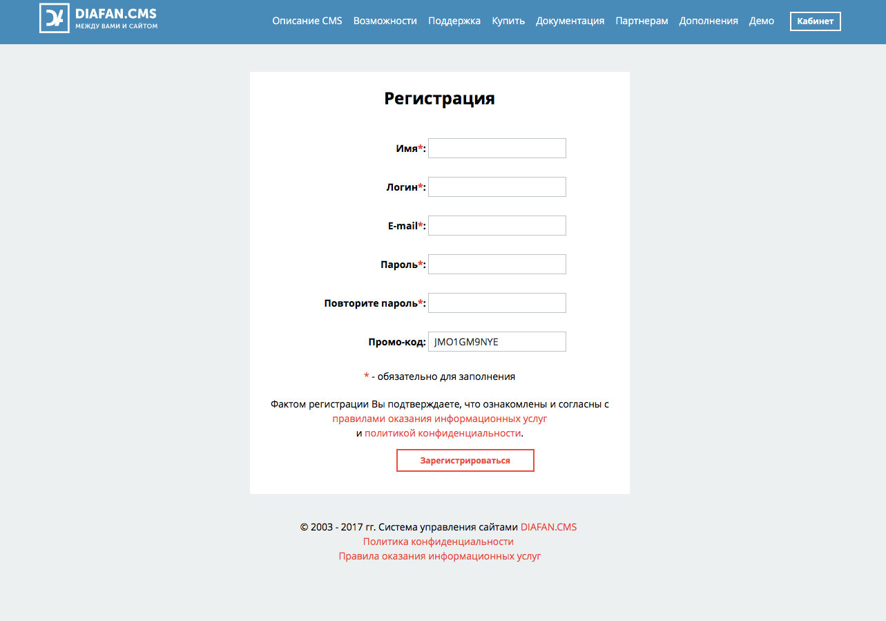 Diafan — промокод на 3 недели бесплатного доступа