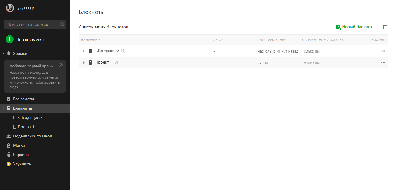 Чтобы как-то организовать все созданные заметки и разделить их по категориям, прикрепляйте их в блокноты. Например, можно создать блокноты “Планы на год” и “Список рабочих задач”, чтобы было проще их искать. Все созданные записи автоматически помещаются в раздел “Входящие”.