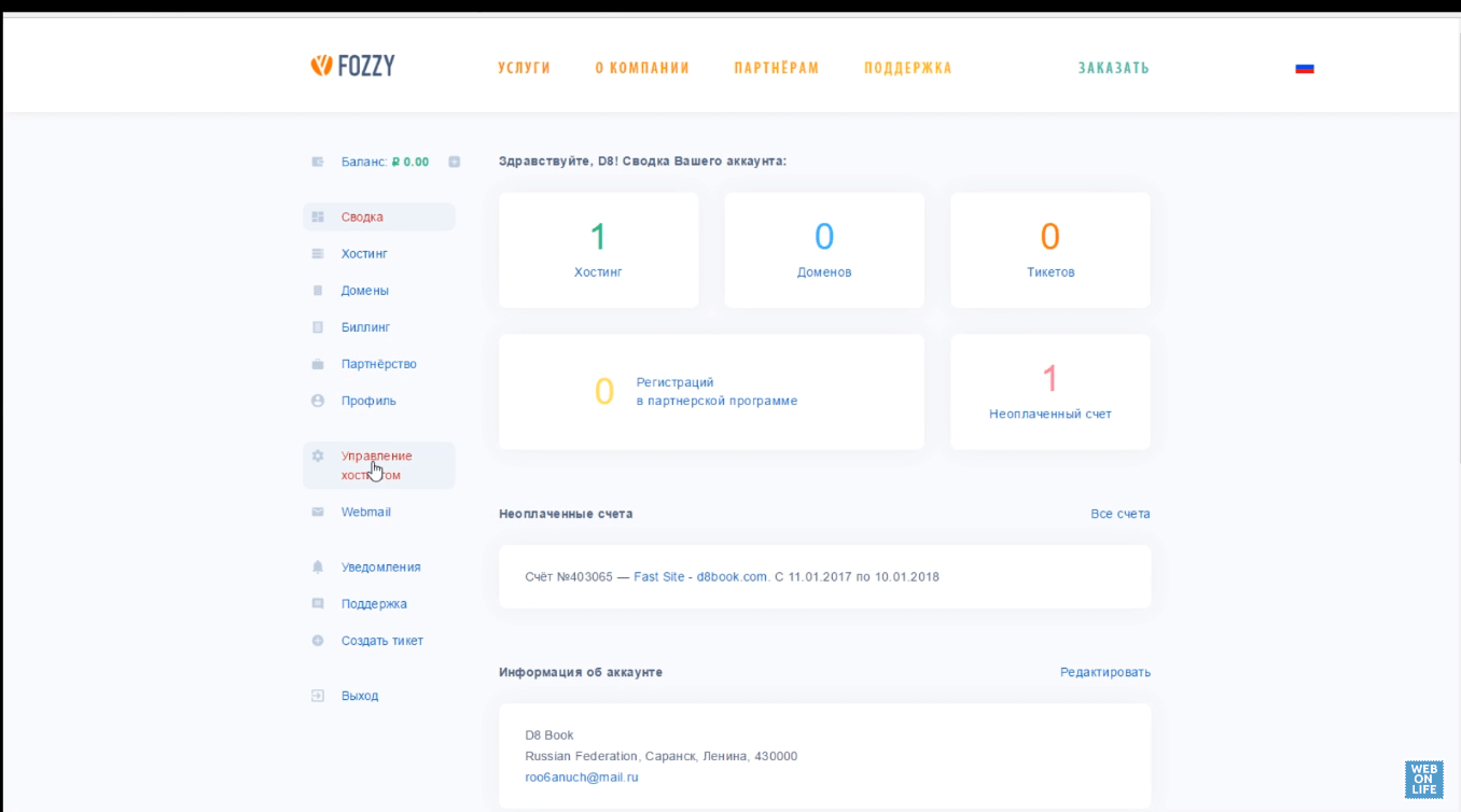 Хостинг провайдер Fozzy появился на Российском рынке спроса и предложения относительно недавно – в 2011 году. Несмотря на то, что он зарегистрирован в США, интерфейс для российского потребителя представлен на русском языке.