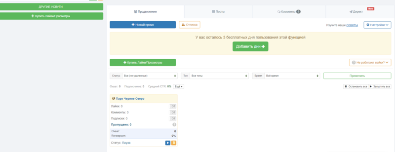 - Возможность опробовать сервис бесплатно в течении 3-х дней. Этого хватит достаточно, чтобы познакомиться со всем функционалом сайта.