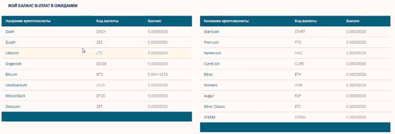 Вывод средств. Для каждой криптовалюты можно указать свой электронный кошелек. Все выводы будут автоматически начислены на эти кошельки. Однако надо заметить, что вывод будет осуществлен только в том случае, если достигнута минимальная сумма.