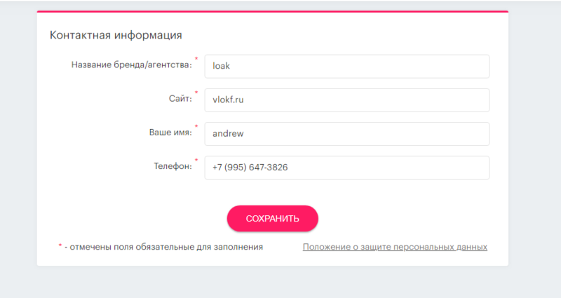 Для начала нужно будет произвести регистрацию, где вам нужно будет загрузить логотип вашего бренда, указать название компании и ввести ваш адрес сайта, также нужно будет ввести требуемые контактные данные. Затем нужно будет выбрать сферу вашей деятельности.