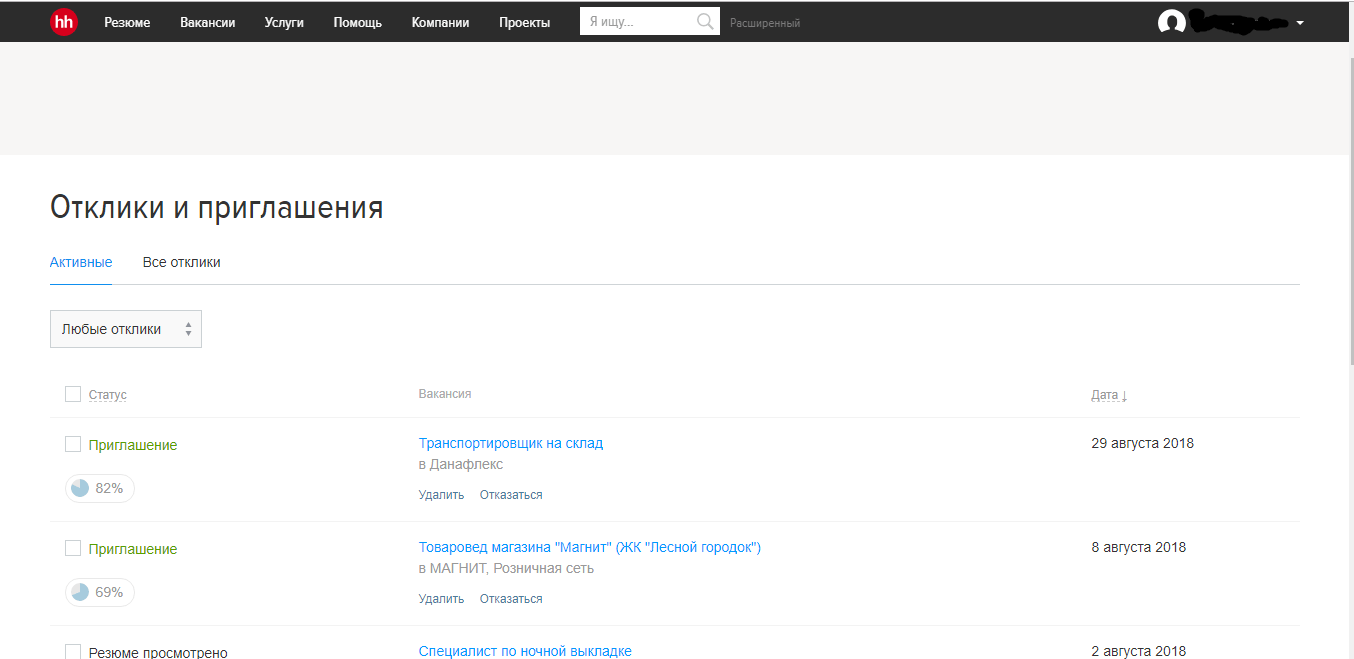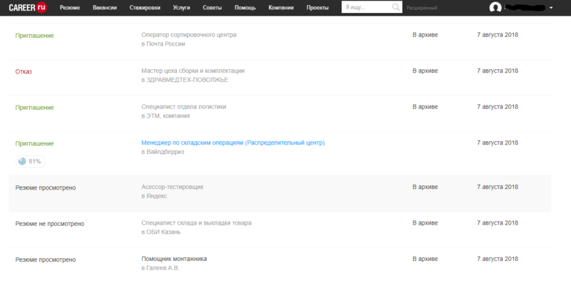 Далее, спустя определённое время, менеджер фирмы, после прочтения вашего резюме откликнется, на ваше предложение. Если вы подходите вам, отправят письмо по электронной почте или позвонят лично вам. Статус отклика можно увидеть во вкладке” резюме”.