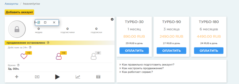 Разработчики не ограничивают вас в количестве добавляемых аккаунтов, вы можете добавить одновременно раскручивать множество профилей. Справой стороны страницы расписаны все доступные тарифы, чтобы перейти к оплате нужно перейти по интересующему вас плану. Дальше нужно будет выбрать удобный для вас способ оплаты: visa, яндекс деньги, webmoney или qiwi.