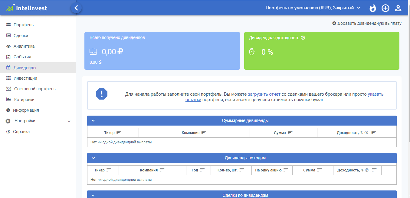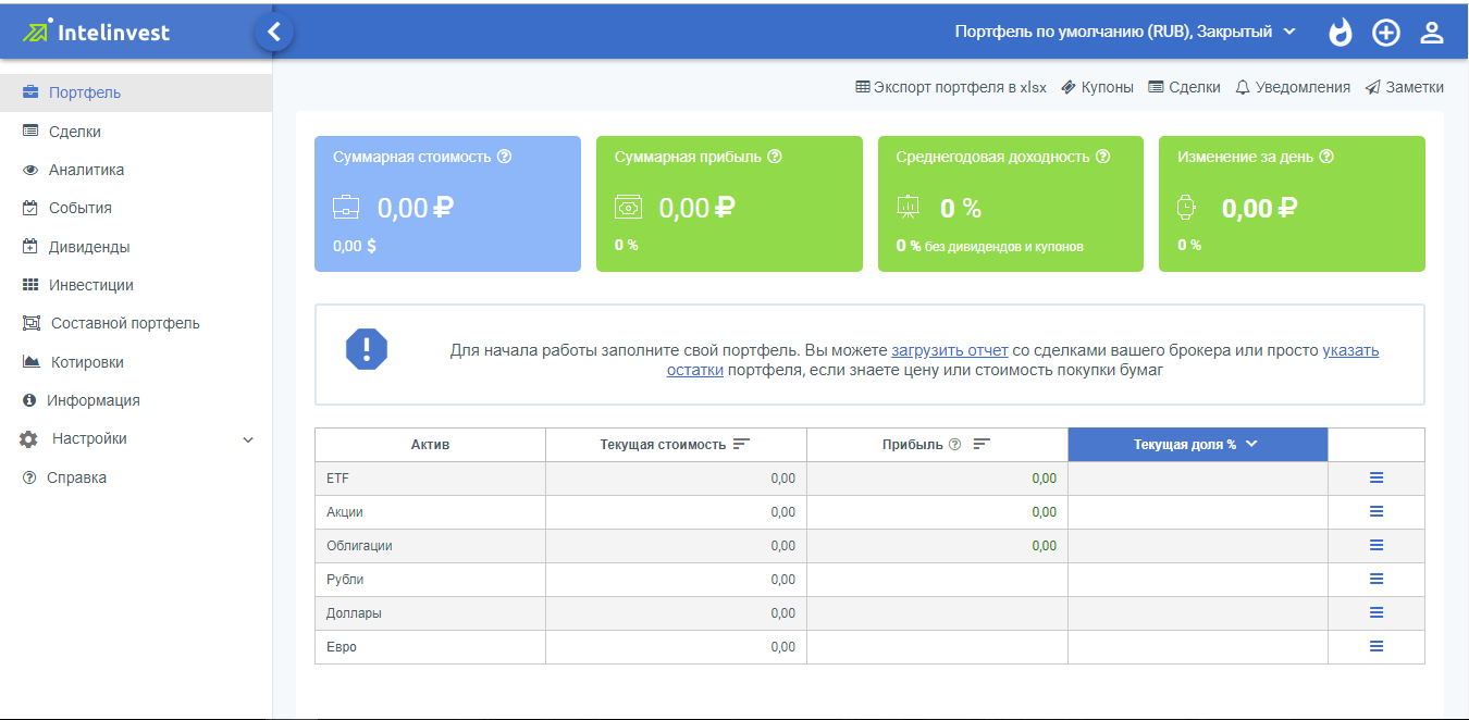 «Intelinvest» представляет собой сервис для осуществления автоматического расчета доходов, посредством детальной аналитики портфелей, ценных бумаг и других видов финансовых активов. Клиенты имеют возможность осуществлять выгрузку отчетных брокерских сводок с дальнейшим их преобразованием в активные сделки. Это позволяет исключить необходимость ручной прописки всех сделок, проводя простую выгрузку в свой аккаунт брокерской отчетности, с последующими опциями ручной настройки и корректировки.