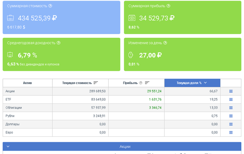 - «Стандарт» - стоимость составляет 99 рублей в месяц, включает в себя 2 портфеля, неограниченное число ценных бумаг, возможность использовать раздел «Инвестиции», а также составной портфель;