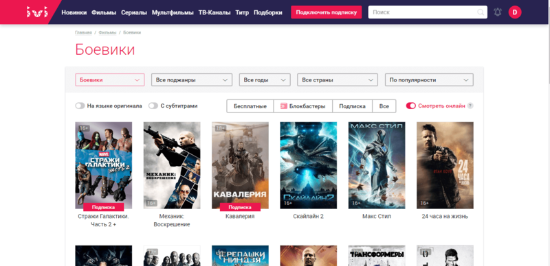 - Большой каталог кинофильмов, все новые блокбастеры и фильмы прошедших поколений.
