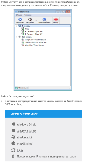 - Функция установки камер на различных интернет ресурсах;