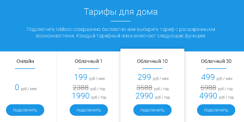 Сервис предоставляет два ряда тарифных пакетов «Для Дома» и «Для Бизнеса» с годовой и ежемесячной активацией, оформляя сразу годовую подписку, клиент получает скидку от 20 до 25%.