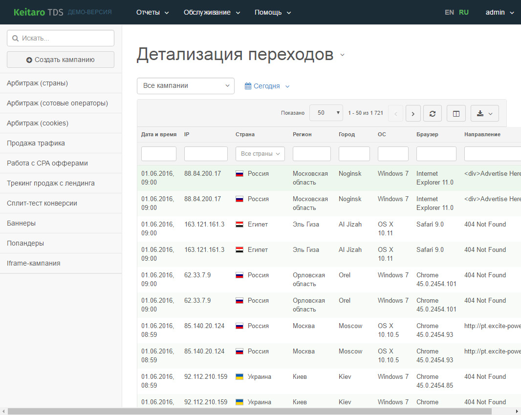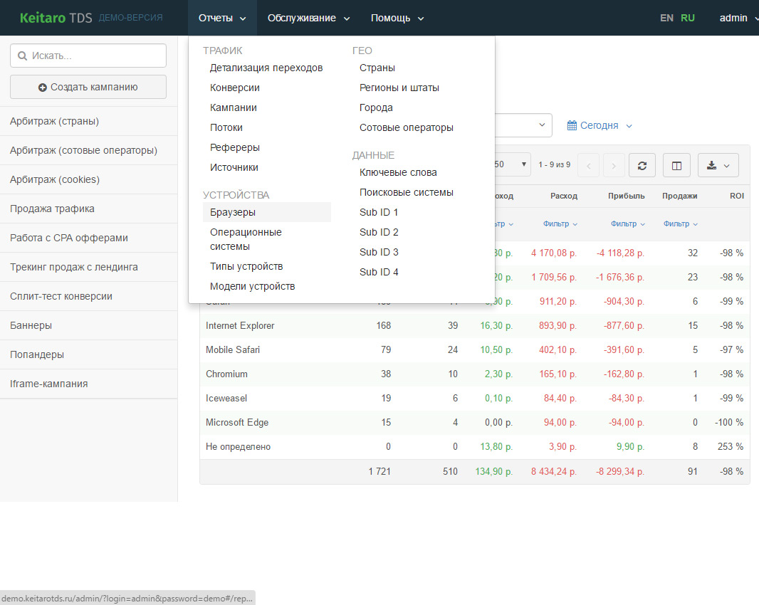 Keitaro TDS — инструмент для управления и анализа WEB-трафика