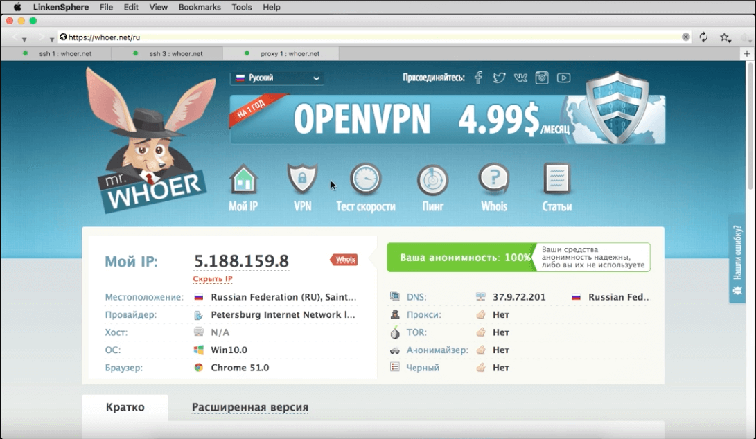- Light версия предоставляет месяц использования браузера будет стоить 100$
