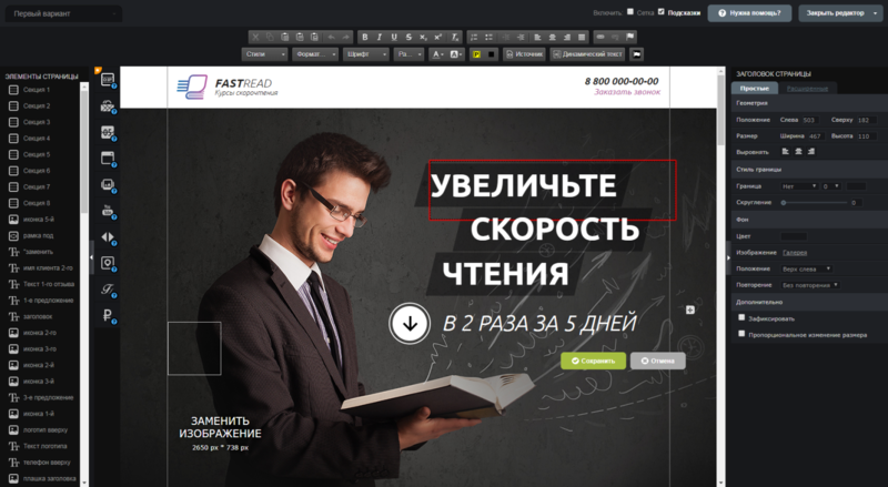 Можно добавлять блоки, секции, текст, кнопки, формы, виджеты и после сразу настраивать их внешний вид под себя: менять форму, расположение, размер, цвет, шрифт, содержание и т.д. В общем, сервис позволяет кастомизировать под себя страницу сколь угодно глубоко.
