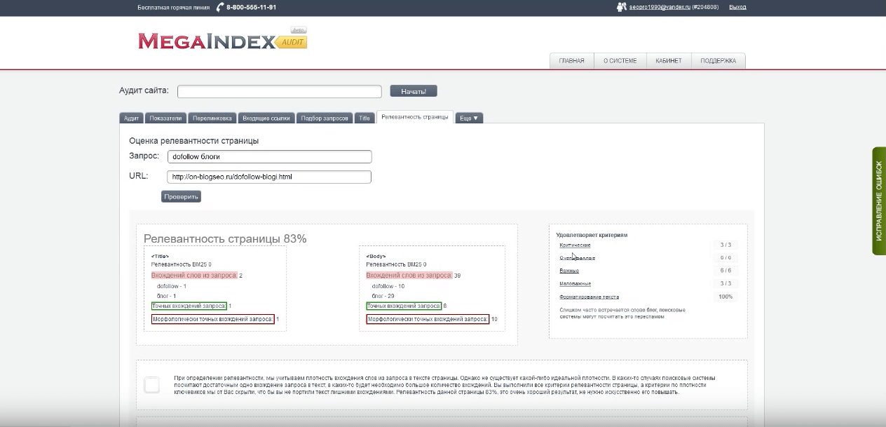 Мегаиндекс — система автоматизации продвижения, анализа и проверки позиций сайта